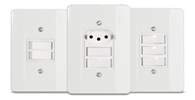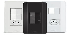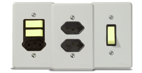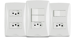 Design clean e original que harmoniza facilmente com qualquer ambiente. Esta linha aceita tanto os módulos de ligação rápida como o sistema tradicional com bornes. É fabricada utilizando-se termoplásticos virgens e aditivados com anti-UV (evitando o amarelento precoce), bem como ligas de cobre nas partes de contato metálico.