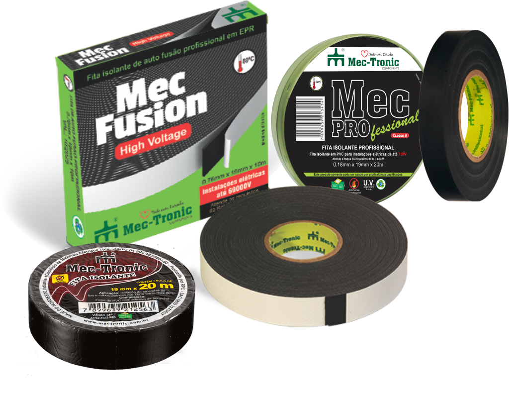 A Mec-Tronic® possui uma das melhores fitas isolantes do mercado, feitas de PVC com característica auto-extinguível. Pensando em tornar as instalações de canaletas e afins mais fácil, dispomos da excelente fita dupla-face feita em EVA.